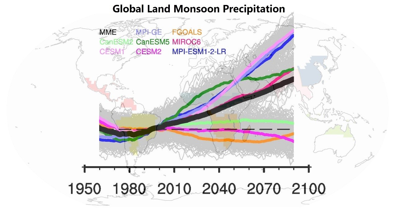Global land monsoon precipitation projection in multi-model super large ensembles. (Image by Chen Xiaolong)